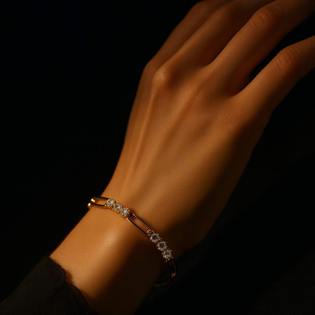 مجوهراتنا مصنوعة من الفضة الخالصة عيار 925، ويزيّنها حجر الموسونايت المعروف ببريقه الاستثنائي المطابق للألماس، مع لمسة عصرية وأنيقة تدوم طويلاً. اما المجوهرات الذهبية فهي مطلية بالذهب الخالص عيار 18k. كل قطعة مصنوعة يدويًا لتكون فريدة وتجمع بين الأناقة والجودة العالية.