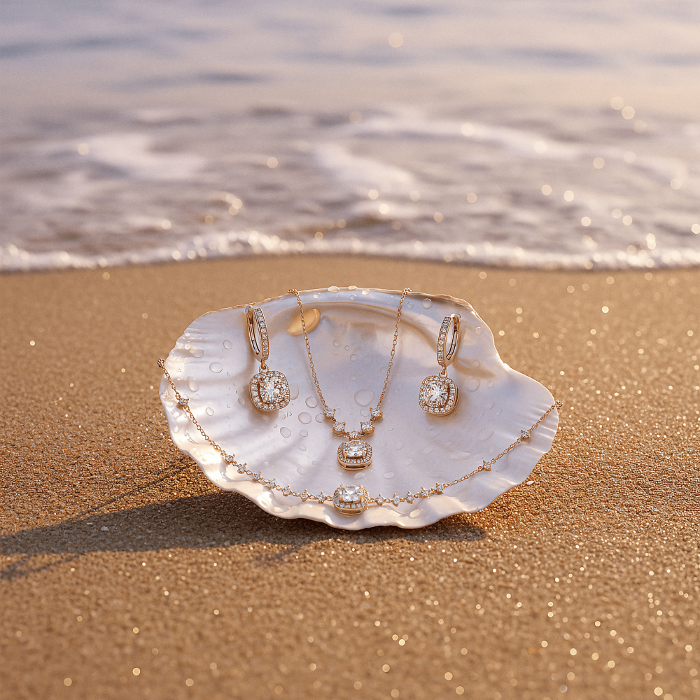 من سوار باريسي بلمسة ناعمة وأحجار تتلألأ ببريقٍ يفوق الألماس، إلى عقد يحيط بالعنق كالهالة، وأقراط تنساب برشاقة ملكية.
